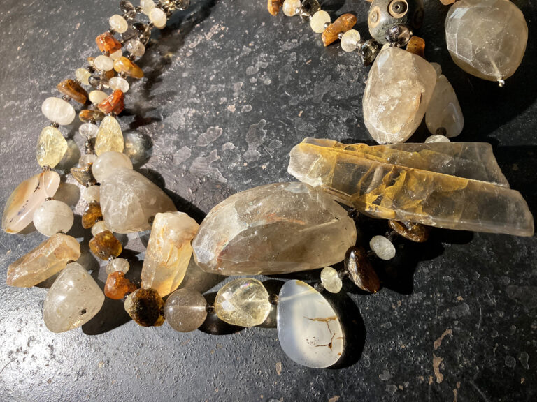 Collier Piece Unique « Anima Terra » – Citrine, Agates, quartz fumé, quartz rutile, ambre