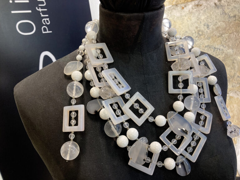 Collier Piece Unique « Celestian Way » – agate blanche, carré et rectangle agate, cristal de roche