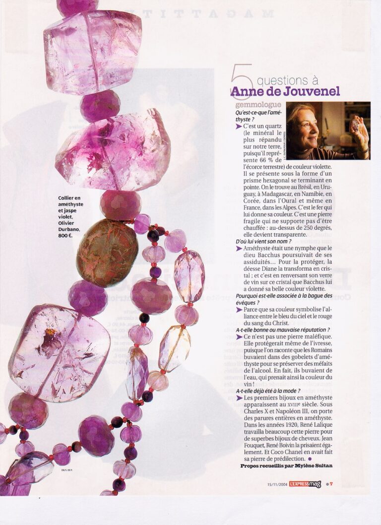 Parution de Colliers Pièces Uniques en pierre dans le magazine