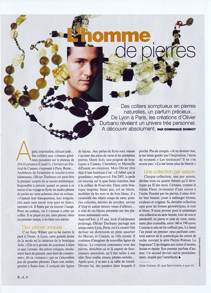 Article de 4 pages: Olivier Durbano, ubijoux pièces uniques en