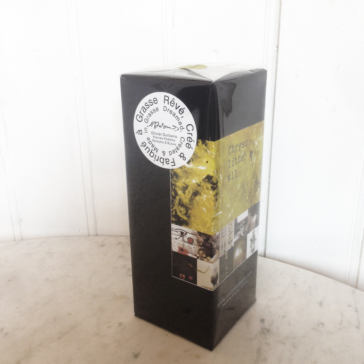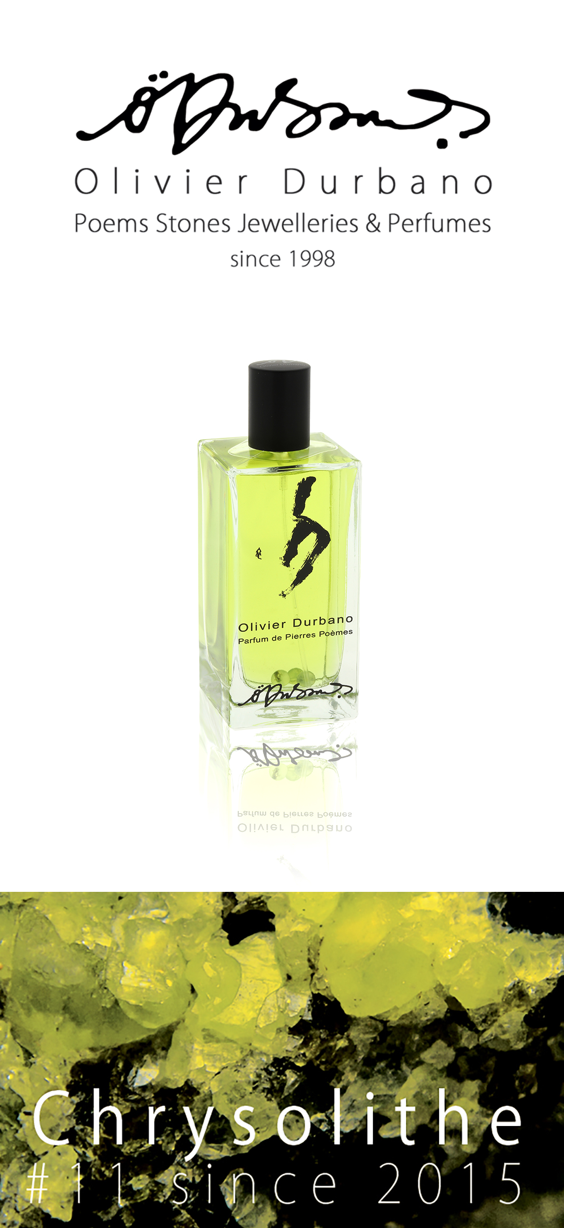 Chrysolithe est un parfum mystique qui tire son nom de la Chrysolithe, du grec ancien khrusolithos, “ pierre d’or ”… Depuis des siècles, cette pierre mystérieuse, universelle, citée à plusieurs reprises dans les Livres Saints, la Bible, la Torah et le Coran, dixième des pierres précieuses qui ornaient le Pectoral d’Aaron, septième pierre de la muraille de la Jérusalem Céleste…. la Chrysolithe, jusqu’au XIXe siècle, terme aujourd’hui désuet, désignait de nombreux gemmes aux reflets dorés nuancés de vert, comme le péridot, la prehnite, l’apatite, l’olivine ou la topaze … La chrysolithe est l’emblème de la Maîtrise de soi, de l’Harmonie du Masculin Sacré au coeur du Féminin Sacré, et de de la Sagesse Divine. Elle symbolise l’élévation pure et spirituelle détachée de toute compromission terrestre. Dans le monde arabe, le nombre 11 est le nombre de la connaiss- ance de Dieu passant par 11 étapes. En Chine, il représente le Tao, « la Mère du Monde », la Voie, du ciel, 6, et de la terre, 5, évoquant une intuition et une inspiration hors du commun. Inspiré par cette philosophie séculaire, Chrysolithe associe selon la tradition les vertus ancestrales et le parfum énigmatique de l’hyso- pe, symbole de pureté et d’humilité, au pouvoir précieux et majestueux du cèdre, aux effluves profonds et aux propriétés revitalisantes ; Infusée de sauge blanche, « sauge du désert », au fort pouvoir purificateur, alliée à la « graine de bénédiction », la nigelle noire. Invoquant toutes les vertus de la force et de l’Harmonie, Chrysolithe exhale un sillage lumineux et pur, empreint de paix et de sagesse.  » Si on veut devenir sage et ne faire point de folies, on n’a qu’à prendre une pierre qui se nomme «Chrysolithe» » peut-on lire dans le « Livre des secrets d’Albert le Grand », célèbre grimoire du XIIIe siècle.