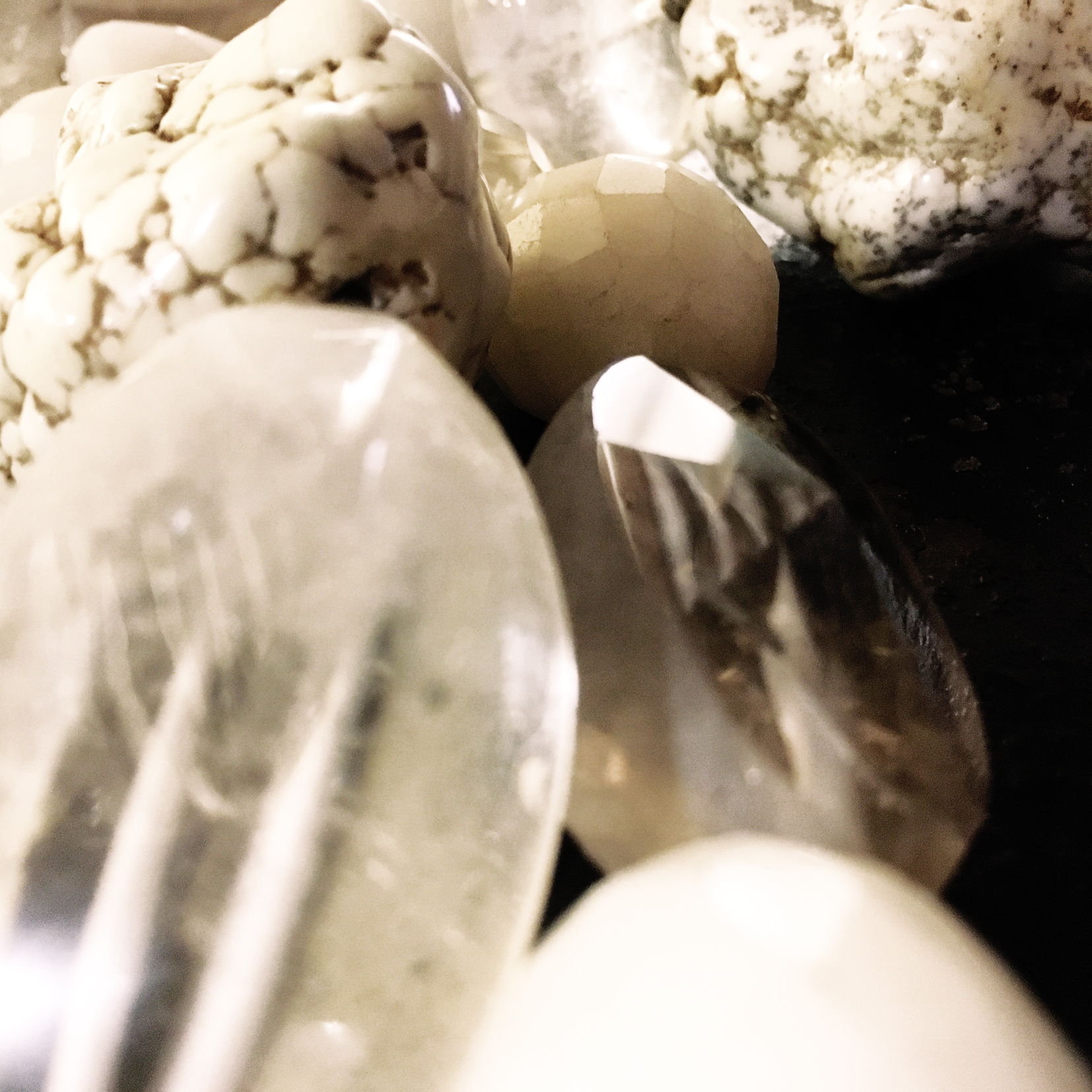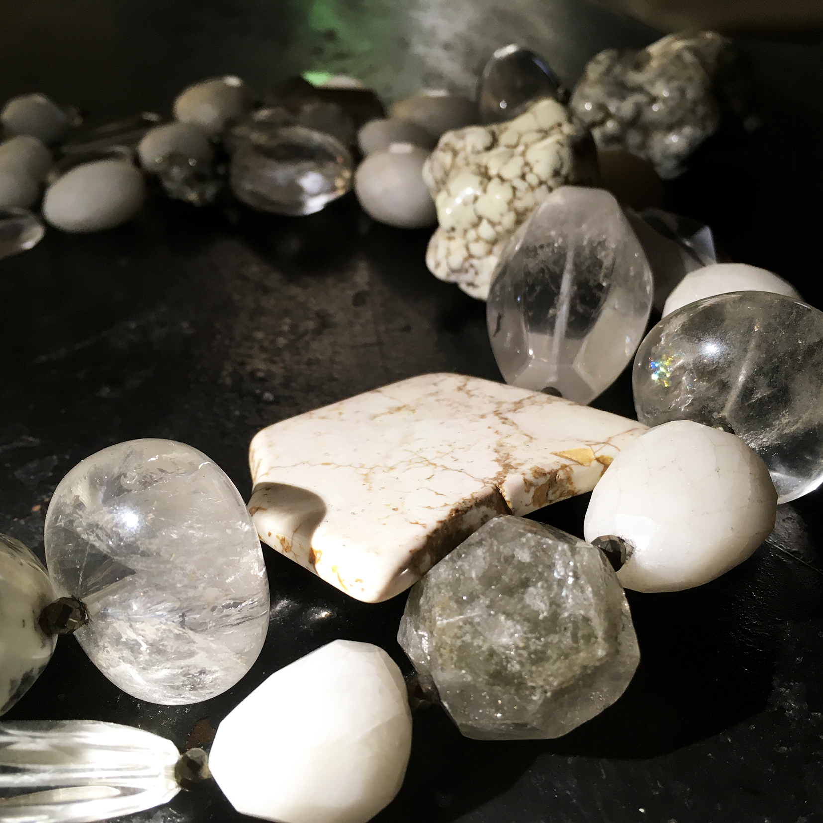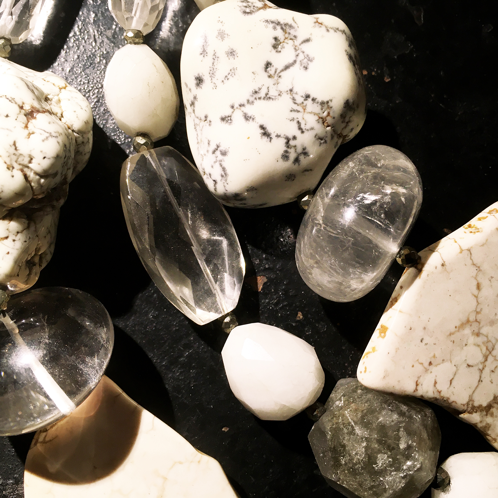 Collier Pièce Unique: Collier « White Smoke » Fumée Blanche – Agate blanche, Quartz, Cristal de roche, Pyrite de fer