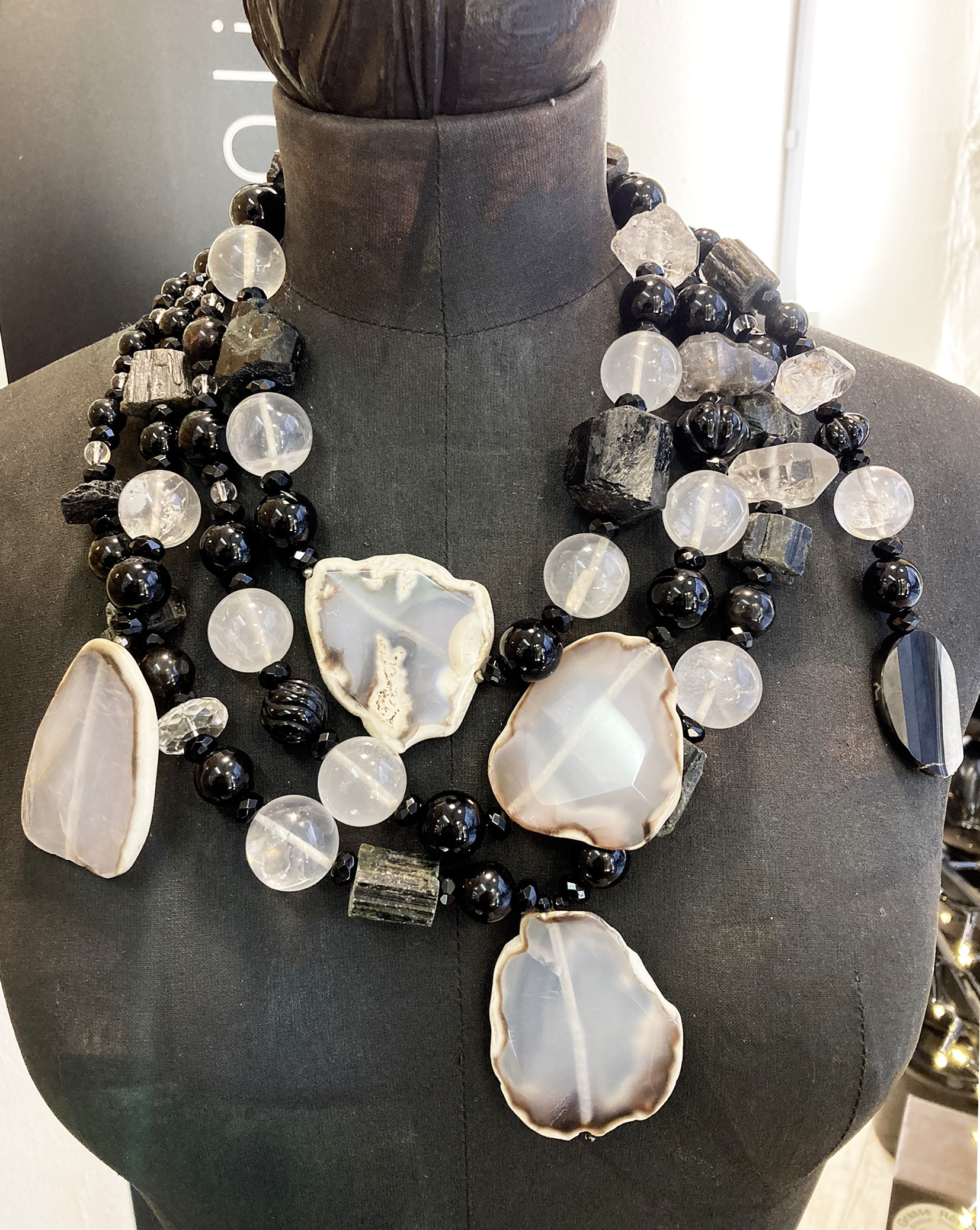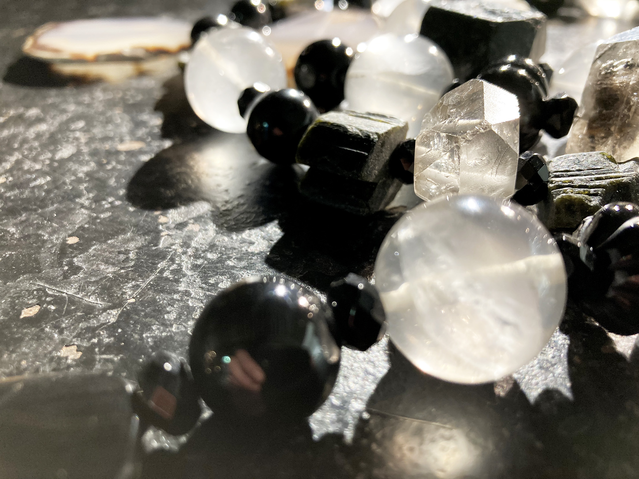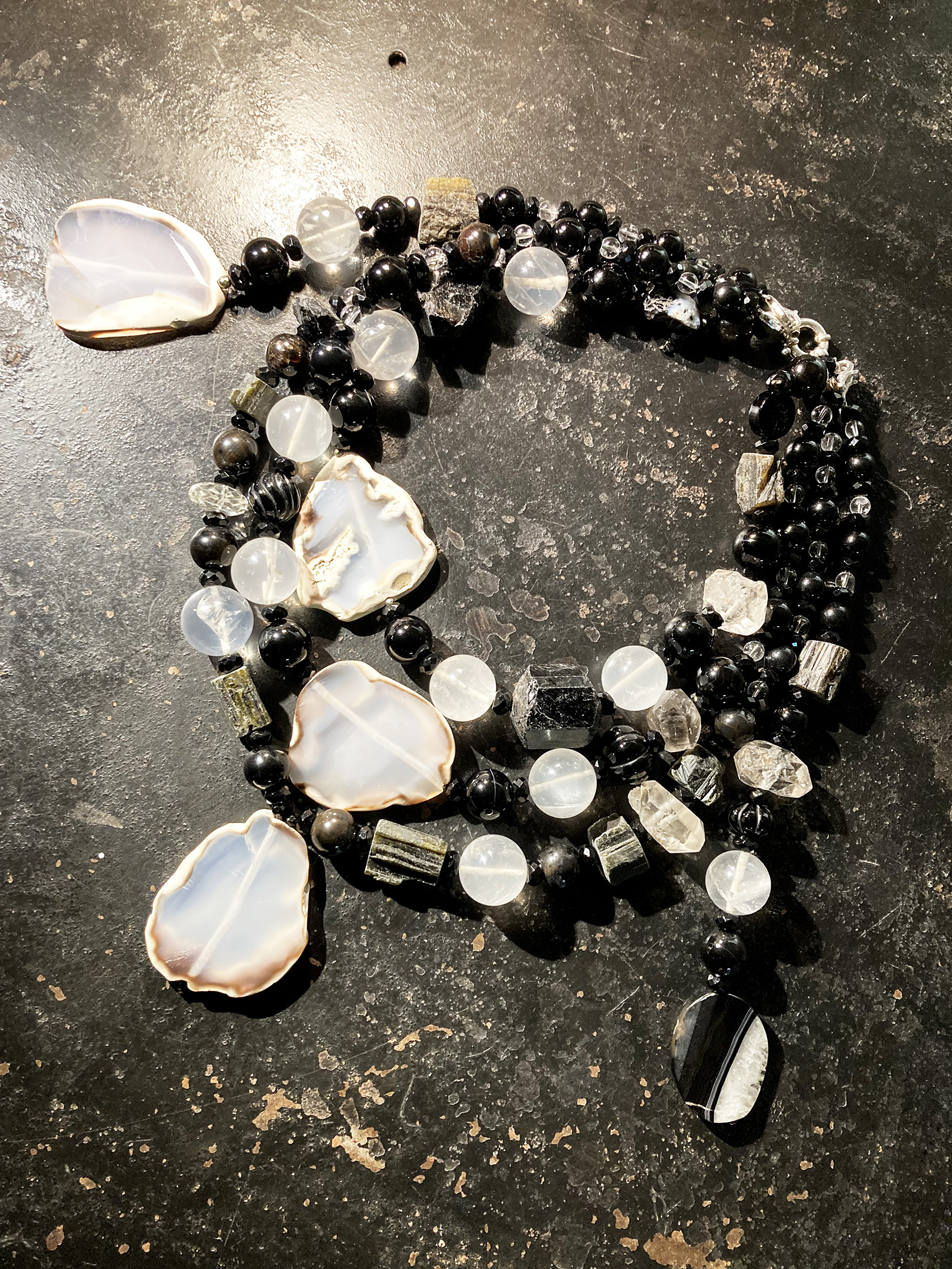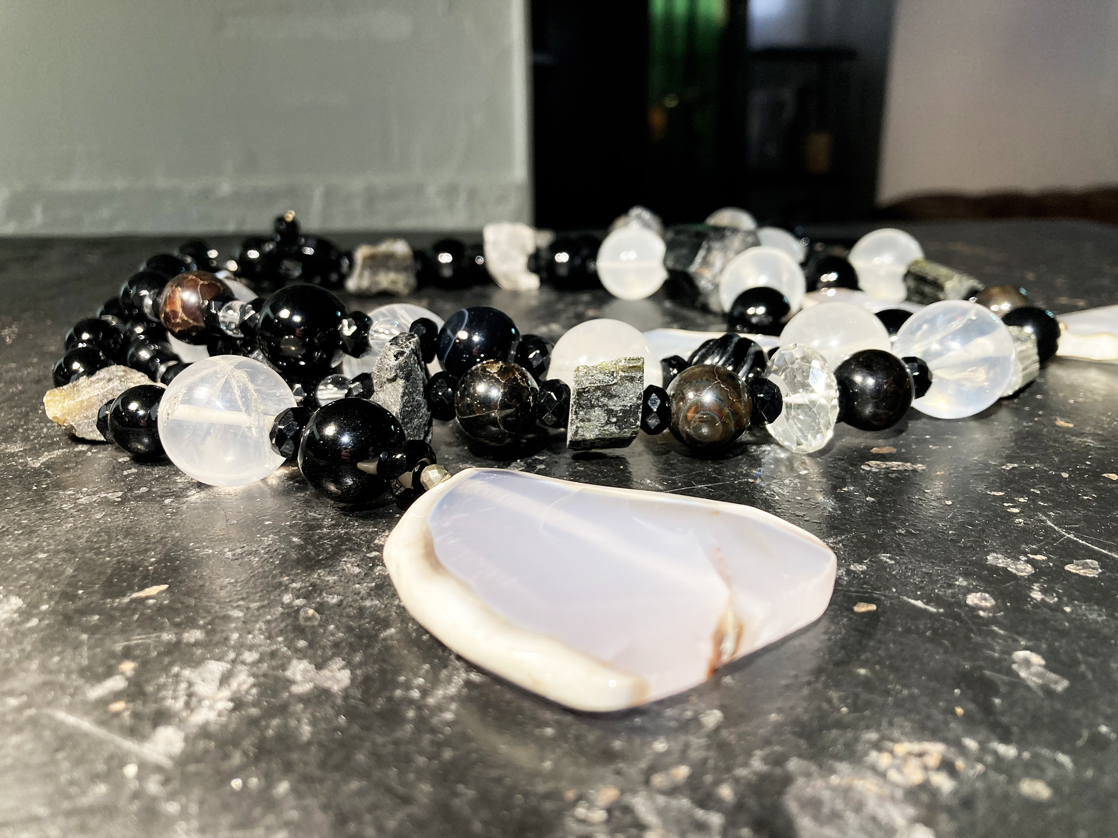 Collier Piece Unique « Love ReBirth » quartz, agate noire, tourmaline noire, cristal de roche