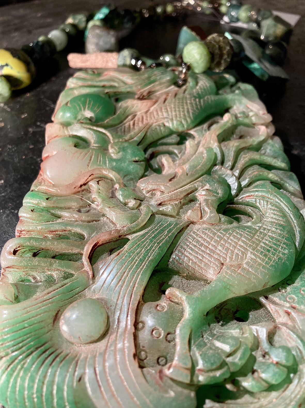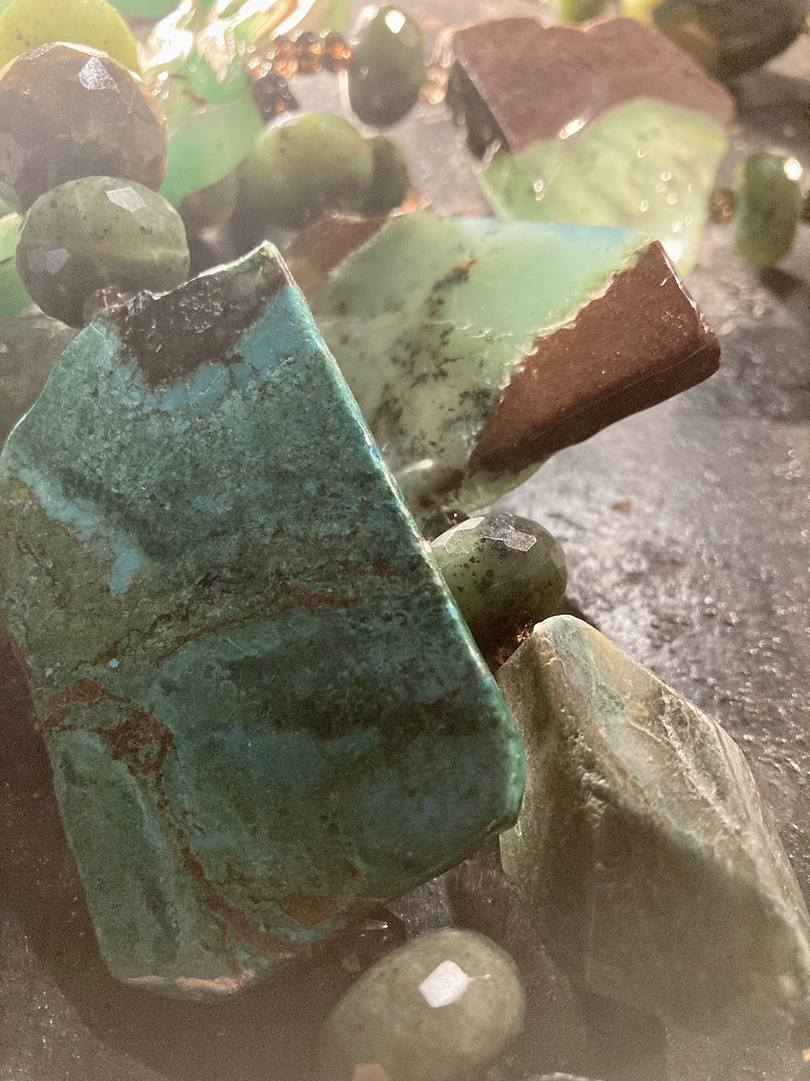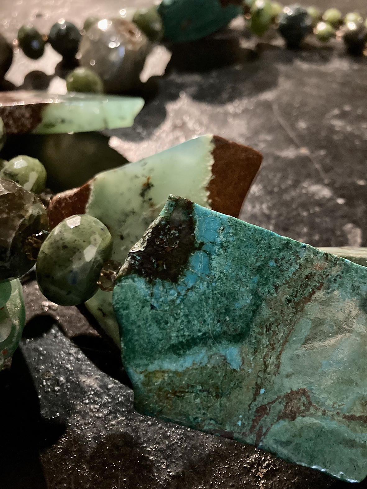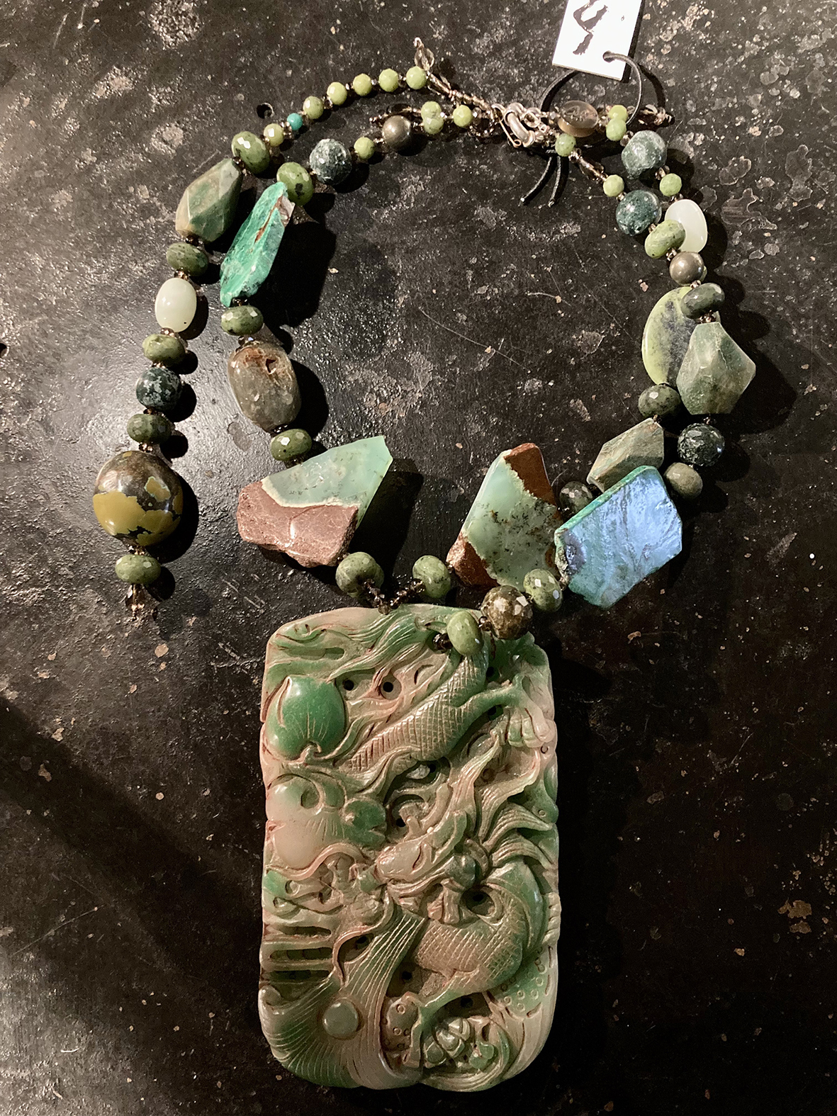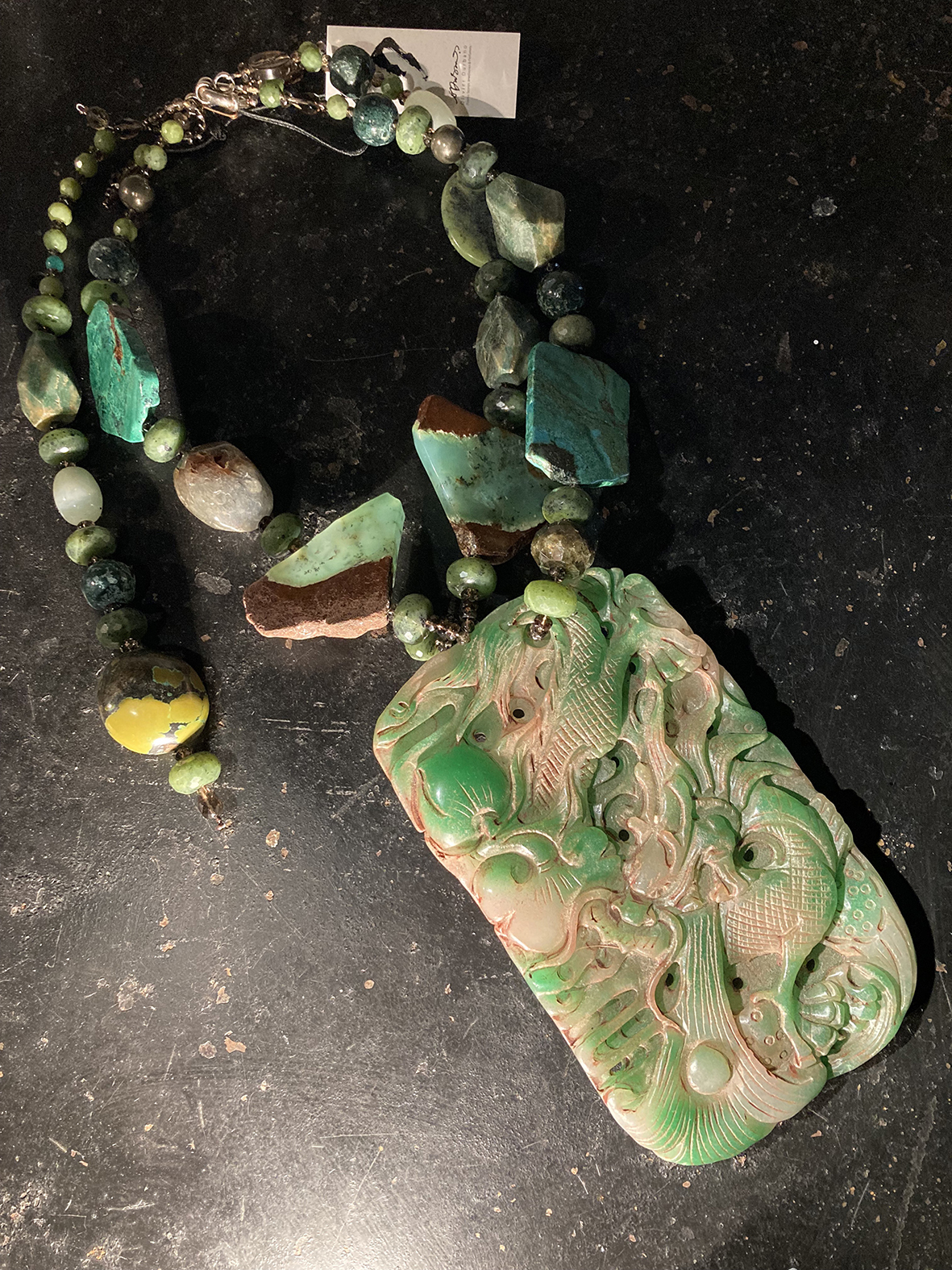 Collier en Pierres naturelles – Pièce Unique « Green Mood Jade » en Jade (jadeite), turquoise ancienne, quartz, quartz fumé, agate, chrysocolle, chrizoprase