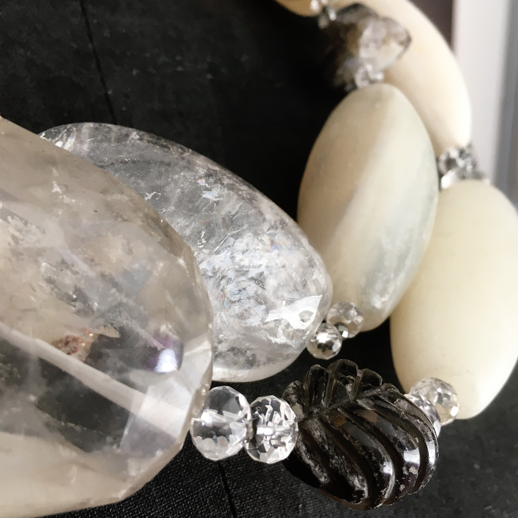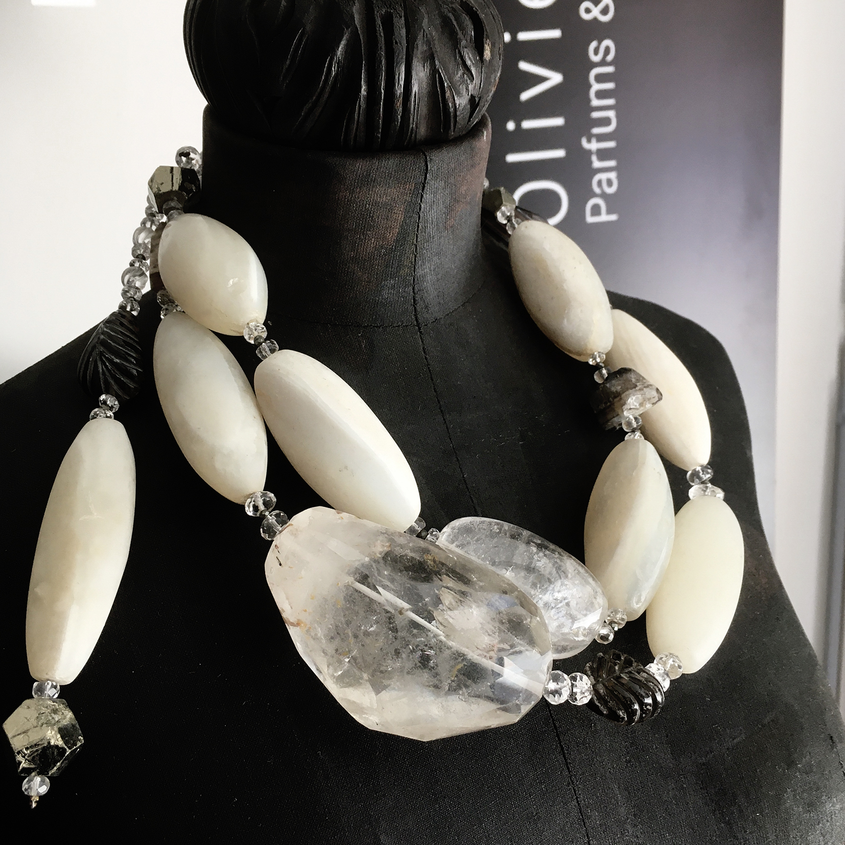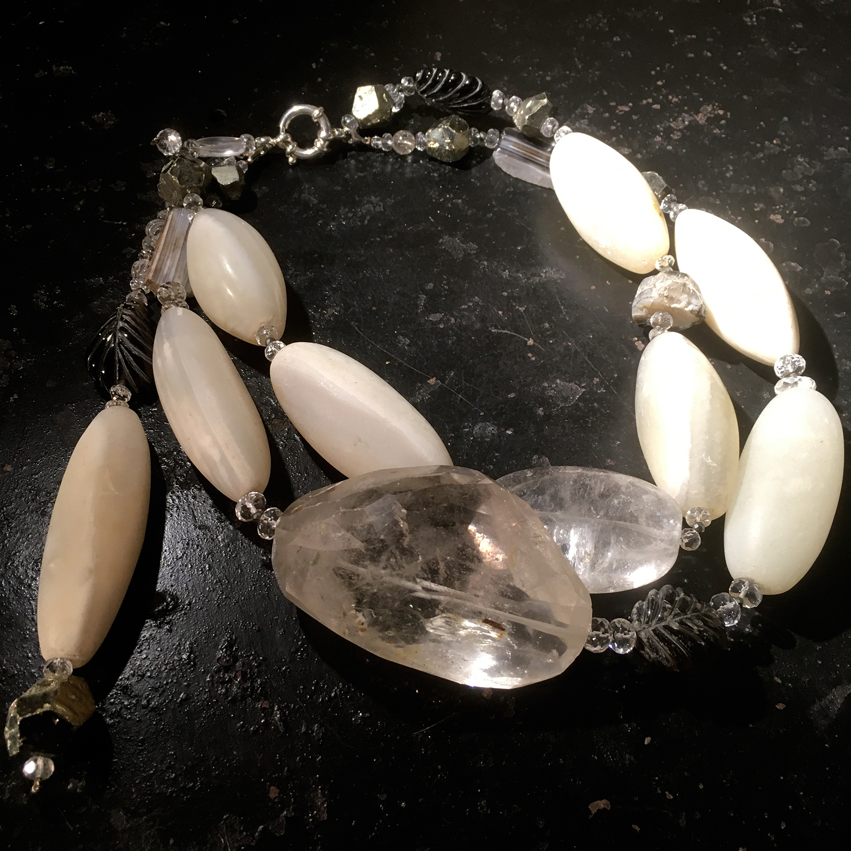 Collier Pierres Véritables – Piece Unique « Pure Rock » Anciennes agates blanches, pyrite, cristal de roche