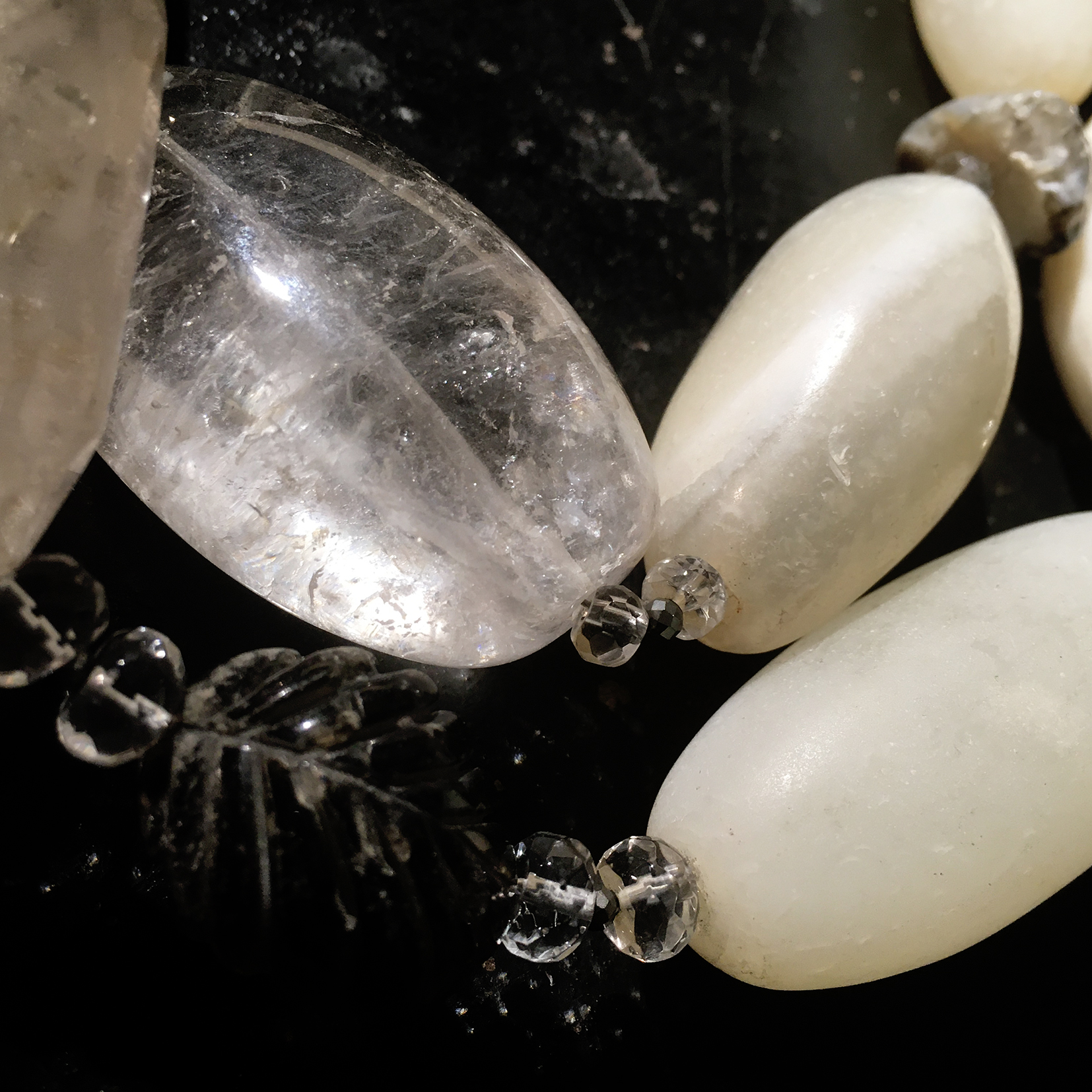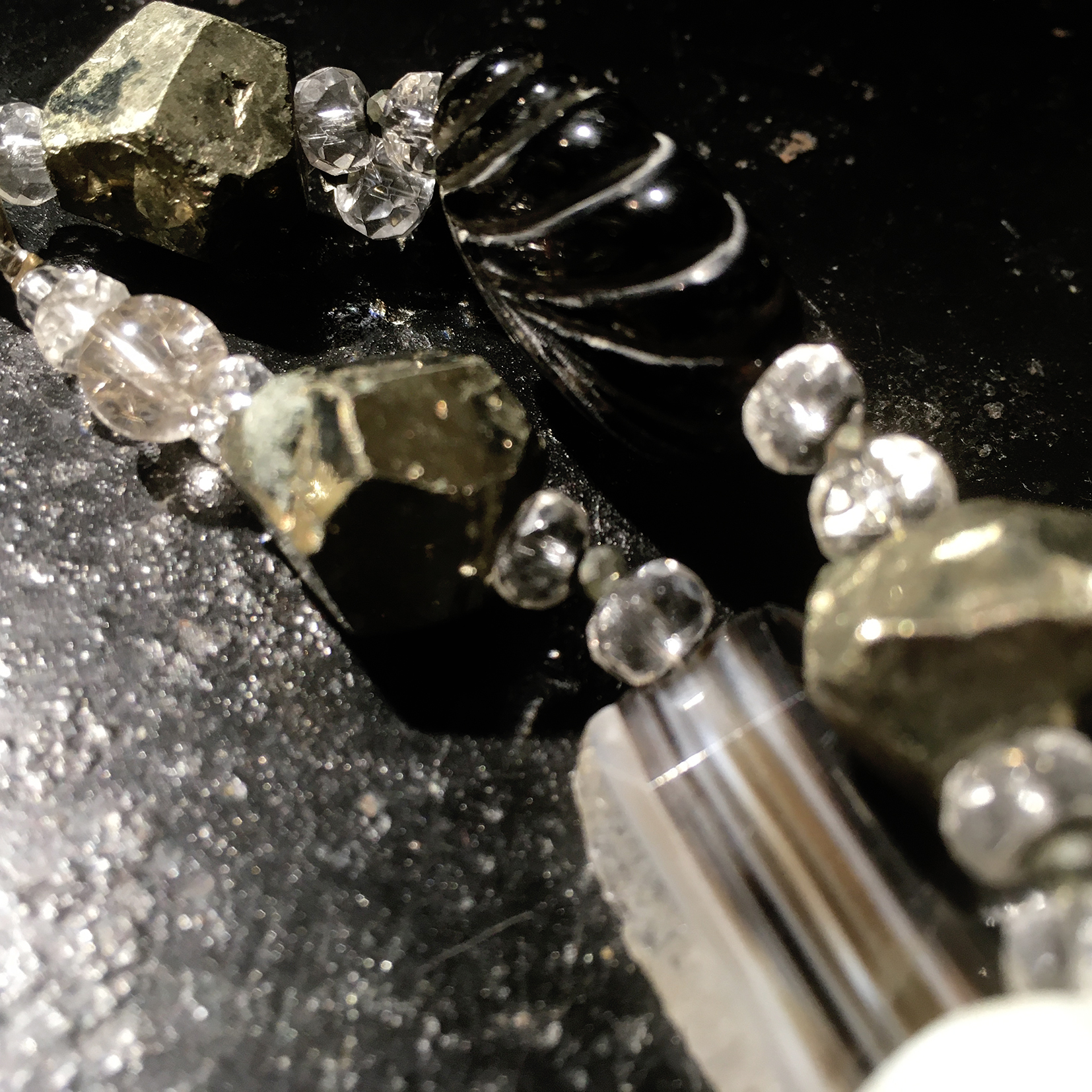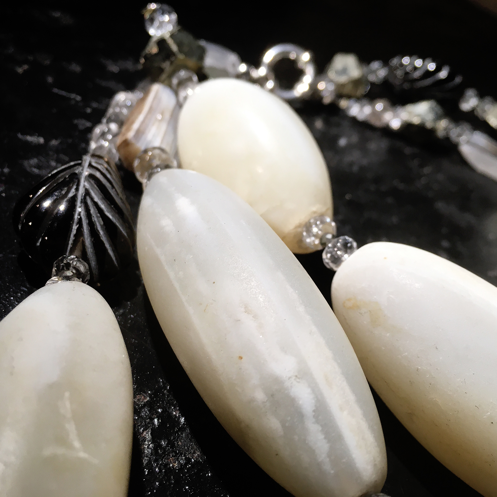 Collier Pierres Véritables – Piece Unique « Pure Rock » Anciennes agates blanches, pyrite, cristal de roche