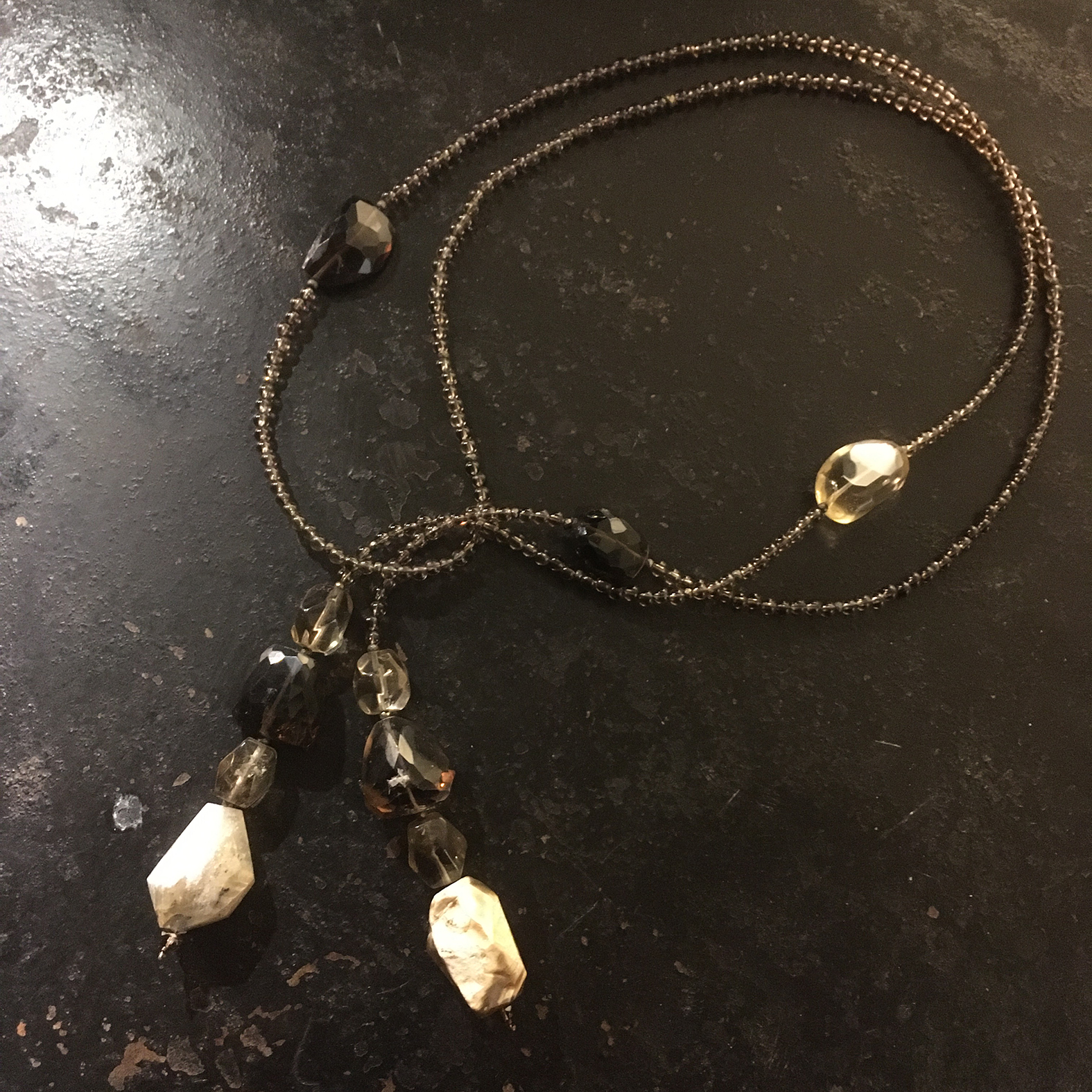 Collier Prophétie Piece Unique en pierre véritable : Citrine, Quartz Fumé & Agate…