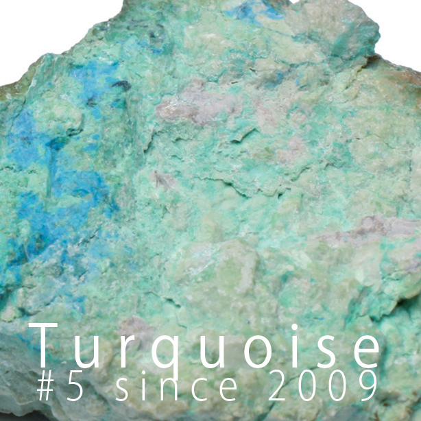 Pierre de l’Égypte, bleu du cuivre, vert du fer ou du chrome, couleur turquoise, couleur d’immortalité; la turquoise symbolise l’univers mystérieux et aquatique du Nil et ses pouvoirs ; elle a également toujours été considérée comme une pierre de vie et de bonne fortune, de protection contre le « mauvais œil », à la quelle on attribuait également de grandes vertus curatives, parant les chambres funéraires des pyramides.